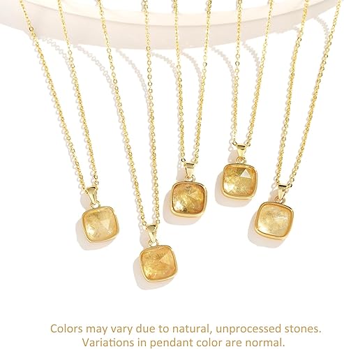 ONE: Handmade Healing Crystal Pendant Necklace, 14K Gold Plated Natural Energy Stone Citrine-Square