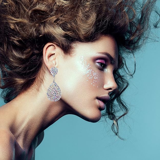 ONE PAIR: Crystal Multi Gold/Silver Rhinestone Chandelier Wedding Bridal Dangle Earrings