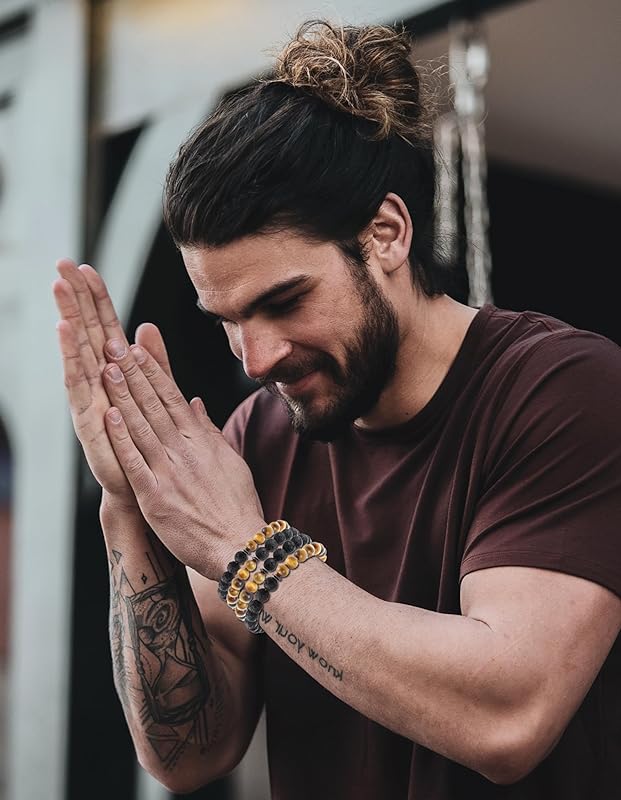 - ♦ Quality Materials -- These semi-precious gemstone beads bracelets are made of 8mm round stone beads. Every piece is unique. The stone bead possess low density and light weight. it's cool feeling in hands will make the anxiety calm down. Tiger's Eye is a golden stone, will bring you good luck and wealth. You Can drop your oil on the volcanic stone, the scent can remain for a long time. The lava stone can help heal you and make you calm down.