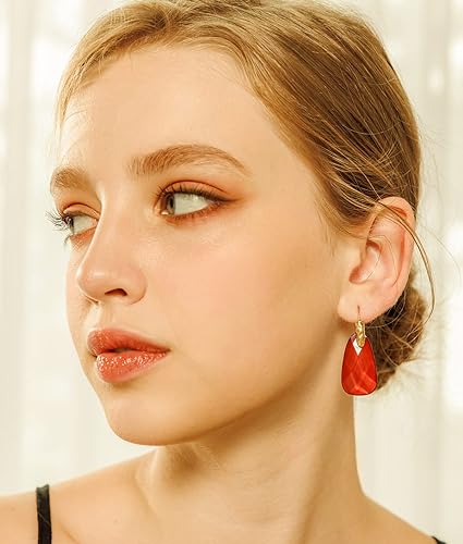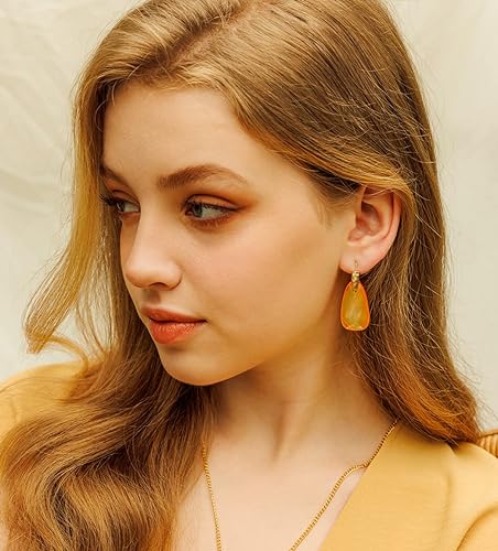 ONE Pair: Resin Earrings for Women - Post Drop Earrings 14k Gold Plated